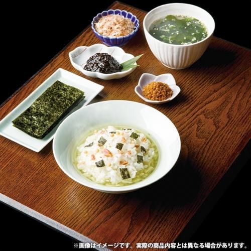 ●商品内容/鰹節削り(2g×2)、永谷園お吸いもの松茸風味(2.3g×2)・のり玉子ふりかけ(4.5g×2)×各1、白子有明味のり(8切×8)・たまごスープ5.4g×各2、伊賀越天然醸造醤油200ml×1