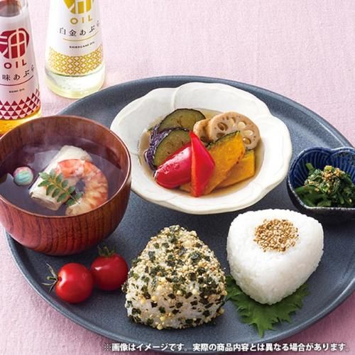 ●商品内容/香味あぶら90g・白金あぶら90g・和風だしの素(4g×3)・胡麻和えの素(5g×2)・かつお味胡麻(4g×2)・有明海苔ふりかけ(5g×2)×各1