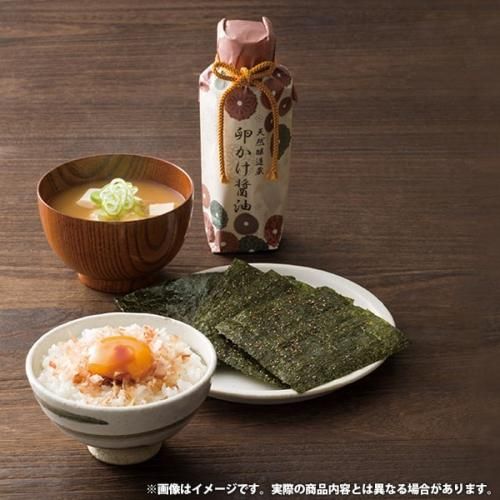 昔ながらの天然蔵でじっくりと熟成し作られたお醤油と、味付け海苔などをセットにした日本の心が感じられるギフトセットです。