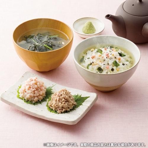 ●商品内容/甘海老のみそ汁(7.5g×3)・北海道産鮭茶漬け(4g×3)×各1、紅ずわいがにほぐし身55g×9